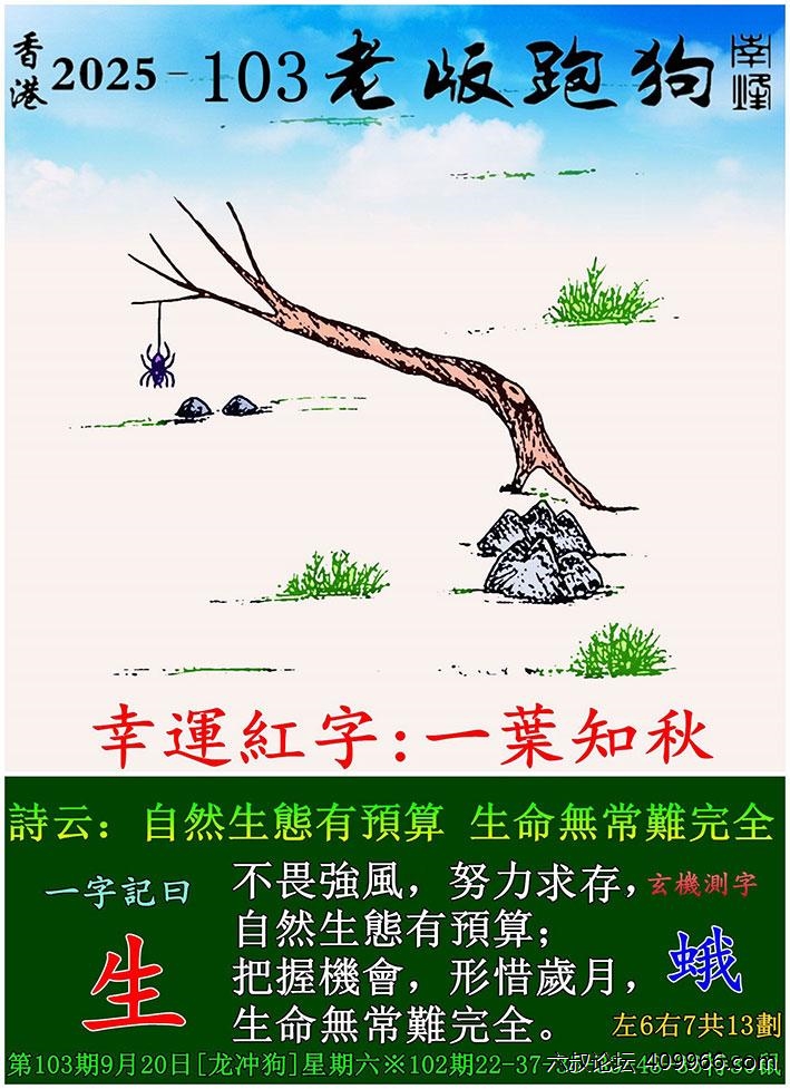 103期老版跑狗一字記之曰:【生】 詩雲:自然生悲有預算,生命五常難完全。