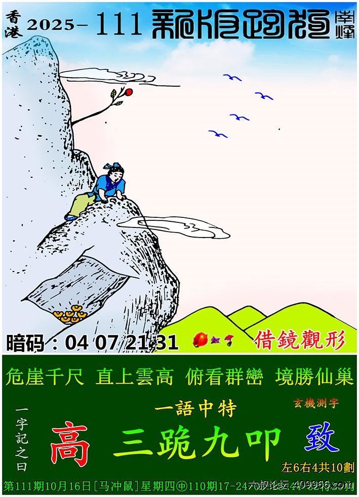 111期新版跑狗一字記之曰:【高】