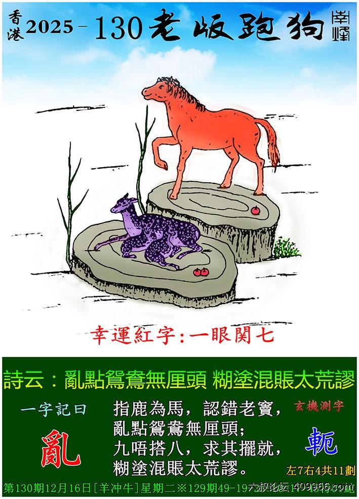 130期老版跑狗一字記之曰:【亂】 詩雲:亂點鴛鴦無厘頭,糊塗混賬太荒謬。