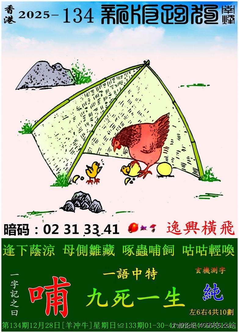 134期新版跑狗一字記之曰:【哺】 玄機測字:《純》 一語中特:九死一生