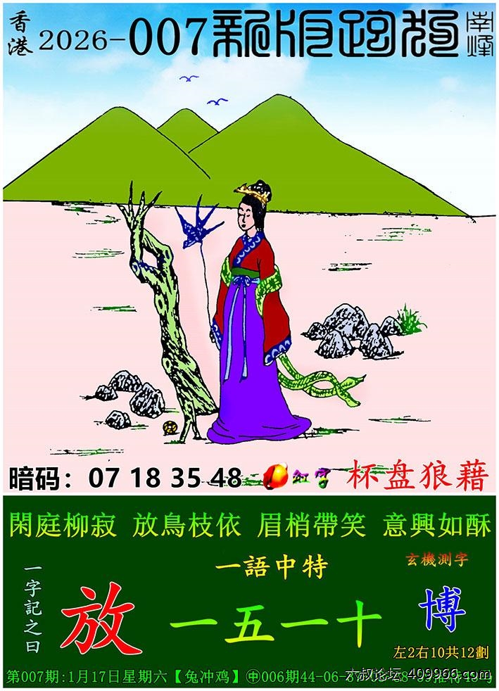 007期老版跑狗一字記之曰:【想】 詩雲:摩登思想非昔比,不婚不生更歡喜。