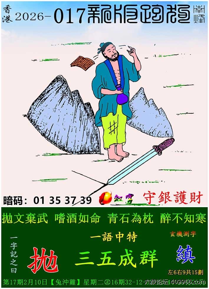017期新版跑狗一字記之曰:【拋】 玄機測字:《縝》 一語中特:三五成群