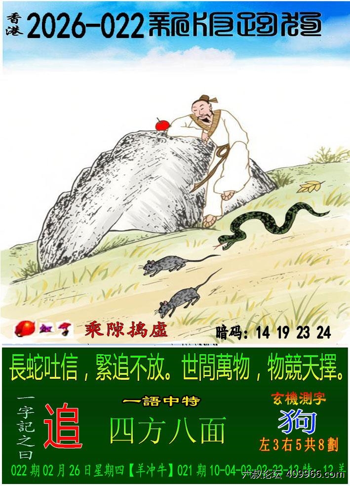 022期跑狗一字記之曰:【追】